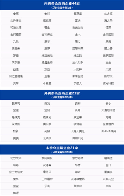 企业层面,根据与会企业会后发布的宣传报道,《知识经济》粗略统计,有67家直销企业参加此次研讨会,其中内资直销企业44家、外资直销企业23家;未参加此次会议的直销企业有21家。