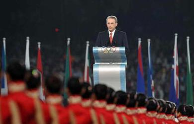 罗格在致辞中说,北京奥运会是一届真正的无与伦比的奥运会。