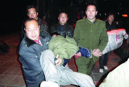 晨报3585000热线12月26日讯 昨日16:30许,记者在淄博火车站广场看到,5名中年男子正抬着一名小伙子向西走去,小伙子并不甘心受5名男子的控制,不断地进行挣扎、反抗。记者在张店公安分局火车站广场派出所附近追上了这群人,随即责问5名中年男子,其中一名身穿黄大衣、头戴棉帽的中年人说,小伙子是他儿子,由于身陷传销不能自拔,他们只能采取这种方式,记者询问被限制人身自由的小伙子是否认识这几名中年男子,小伙子大声喊叫:“我不认识他们,快让他们放开我!”