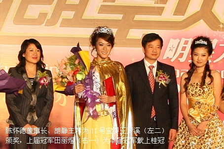 11月26日晚,佛山蝴蝶谷大酒店,一场华丽的时尚盛典激情上演。当晚,2008月朗宝贝明星大赛总决赛在这里举行,来自全国各个赛区的12名明星宝贝候选人,揭开她们神秘的面纱,走上绚丽的舞台,在一阵阵的欢呼声中,尽情展示自己的美丽与才艺,尽情展示月朗人卓而不群的风采。经过近3个小时的激烈角逐,“最具智慧奖”获得者、11号佳丽王梦溪力压群芳最终获得本次大赛的冠军。3号选手潘盈获得“最佳仪态奖”和本次大赛的亚军,4号郝美韵获得季军,另外9名选手也分别获得“最佳上镜奖”、“最佳才艺奖”、“最具人气奖”、“优秀奖”等奖项。