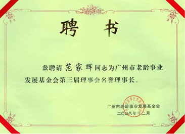 广州市老龄事业发展基金会聘任范家辉为第三届理事会名誉理事长