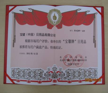 为了对消费者的日常消费给出可行性建议,近日,北京质量协会特别对消费者满意的日用品、护肤品进行了评选。根据评选,宝健公司的“宝芙牌” 护肤品及“宝馨牌”日用品凭借品质优良、符合国人需求等特点,分别被消费者评为用户满意产品。