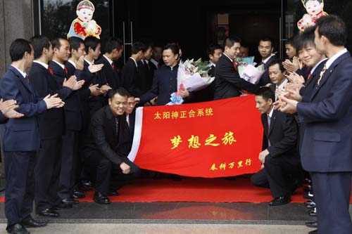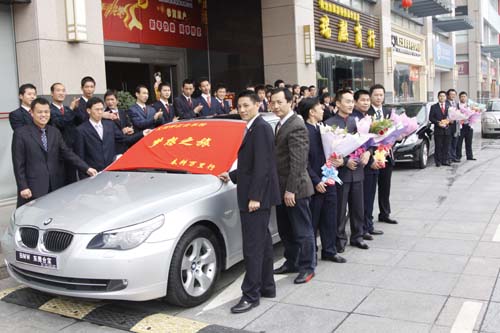 上午11:00,在太阳神事业部办公楼下,廖总及各团队领导人驾驶着在公司2009年会上获得的豪华轿车,载着正和系统伙伴们的希望、载着对未来美好的憧憬向着梦想正式启程。