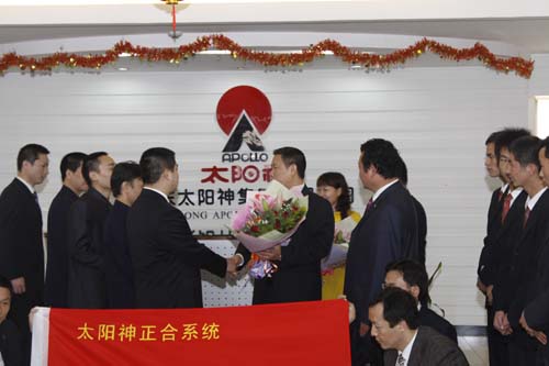 太阳神直销事业部副总经理、市场总监杜正楠先生代表公司为正合系统的伙伴们送上了新春祝福,并亲自为伙伴们进行了启航授旗。