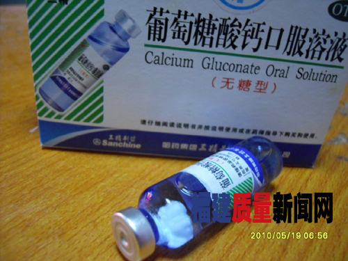 据天津的王小姐反映,先前因身体不适在地区医院就诊,医生开药方,内含贵公司生产的葡萄糖酸钙口服液。当时因为同时服用其他药品,王小姐就把口服液搁置一旁。数天前,王小姐想起需服用口服液,便再次将葡萄糖酸钙口服液找去,在打开包装盒正打算服用时,王小姐惊愕的发现一瓶口服溶液中竟有黄豆大小的塑料白色泡沫