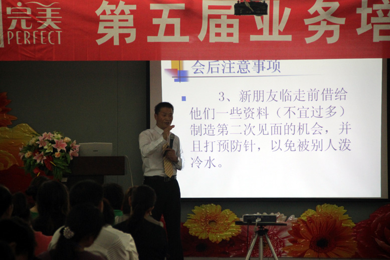 会议议程安排饱满,共分五大板块:1、目标与计划;2、全面认识完美;3、完美全线产品培训;4、如何建立良好的心态;5、团队建设、六项工具等基础培训课程。激情四射、幽默风趣的演讲不仅让大家对完美公司有了更深刻透彻的认识,更通过其完美一路走来的心路历程明白:梦想不能变成明确的目标就会变成梦幻,从来不为你的梦想付出行动,梦想就会变成梦幻。。。