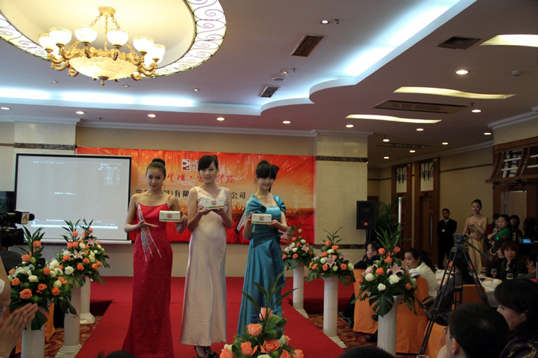 随着动感时尚音乐的响起,青春靓丽的模特们手持完美牌健扬胶囊出场。一曲悠扬的《花样年华》将我们带入了唯美的境界,云想衣裳花想容是每个女人的梦想,洋溢青春笑颜的模特为爱美的女士奉上了丹参阿胶珍珠胶囊。随着音乐的不断变化,模特手持低聚果糖沙棘茶、完美一生糖风情万种的呈现在了我们的面前, 原来的茶和糖世界也可以如此与众不同,让我们在品味生活的同时还可畅享健康。最后,我们期待已久的完美红葡萄酒隆重登场了。美酒佳人相互辉映,完美红我们为你而陶醉。