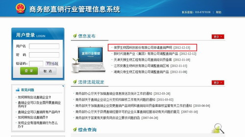 12月13日,商务部直销行业管理信息系统正式向业界公布了保罗生物申请直销牌照的声明,标志着保罗生物凭借强大实力已通过了公安部、国家工商总局、商务部条法司、外资司严格的规范审查,为最终获取直销许可证铺平了道路。