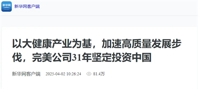 新华网 | 以大健康产业为基,完美公司31年坚定投资中国